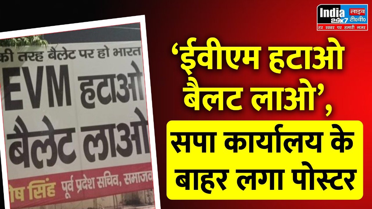 EVM Politics: ‘ईवीएम हटाओ बैलट लाओ’, सपा कार्यालय के बाहर लगा पोस्टर