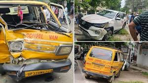 Lucknow News: उत्तर प्रदेश की राजधानी लखनऊ में रफ्तार का कहर लगातार देखने को मिल रहा है, जिसके चलते आए दिन शहर के अलग अलग इलाकों में कोई भी हादसे का शिकार होता जा रहा है लेकिन वाहन चालक अपनी रफ्तार पर लगाम नहीं लगा पा रहे हैं। इसी से जुड़ा एक बड़ा हादसा शुक्रवार सुबह लखनऊ के महानगर इलाके में देखने को मिला, जहां एक तेज रफ्तार फॉर्च्यूनर कार ने माउंट कारवेल स्कूल की वैन को जोरदार टक्कर मार दी। (Lucknow News) मिली जानकारी के मुताबिक, वैन में सवार मासूम बच्चियों के अलावा वैन के ड्राइवर को घायल अवस्था में सिविल अस्पताल में भर्ती कराया गया है। वहीं पुलिस इस आरोपी कार सवार से पूछताछ कर रही है।