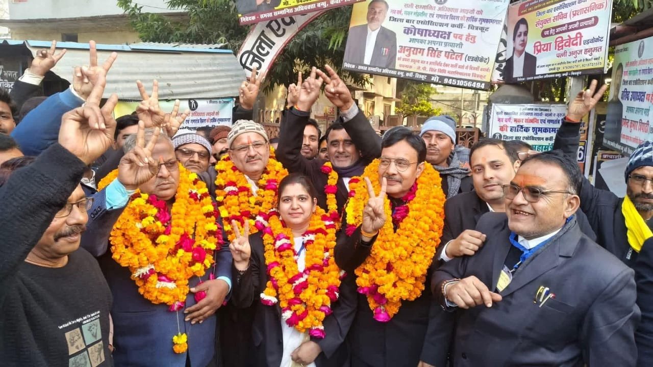 इस चुनाव में अध्यक्ष पद पर सुशील मिश्र, महासचिव पद पर विजय त्रिपाठी, कोषाध्यक्ष पद पर अनुराग पटेल, वरिष्ठ उपाध्यक्ष पद पर रामेंद्र त्रिपाठी, कनिष्ठ उपाध्यक्ष पद पर कृष्ण गोपाल शुक्ला एवं रणविजय, तथा संयुक्त सचिव (प्रशासनिक) पद पर प्रिया द्विवेदी ने जीत हासिल की। UP News) (सभी निर्वाचित पदाधिकारियों ने बार की गरिमा, एकता और अधिवक्ताओं के अधिकारों की रक्षा के लिए मिलकर कार्य करने का संकल्प दोहराया।